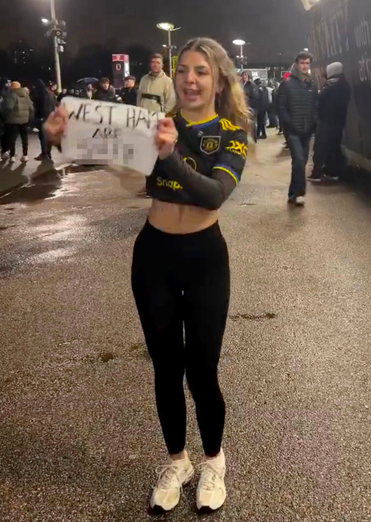 Influencer has full pint dumped over her after taunting angry football fans